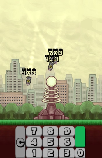 위에서 떨어지는 단어를 정확히 입력하면 글자가 사라지는 한글 타자게임처럼 곱셈의 결과에 해당하는 숫자를 정확히 입력해야 성공하는 곱하기 게임입니다.핵폭탄에 곱셈이 붙어있고 결과에 해당하는 숫자를 입력하고 엔터키를 눌러주면 핵폭탄이 사라지게 되고 바닥에 떨어질때까지 못맞추면 대폭발을 일으키게 됩니다.