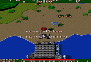 숲과 건물이 빽빡하게 들어선 정글을 배경으로 적 병사를 쓰러트리고 적 탱크를 파괴하면서 진행하는 종스크롤 타입의 고전 타이틀인 왕탱크입니다.탱크의 자랑인 대포와 대인공격 무기인 기관총을 무기로 쓰게 되는데 적 병사의 경우 밟아도 제거가 가능합니다.사선으로 대포알을 쓰는게 은근 유용하니 연습많이 하시고 엔딩 보시길 바랍니다.