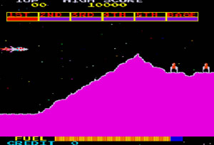 초창기 오락실의 슈팅게임을 혼자서 책임지고 있었다고 해도 과언이 아닌 정통파 슈팅 타이틀인 스크램블입니다.앞으로 발사되는 총알과 밑으로 발사되는 폭탄으로 공중의 적과 지상의 적을 파괴하면 진행을 하시면 됩니다.지상에 보이는 주유소를 파괴해야 에너지가 채워지게 된다는 점 꼭 기억해두시구요.