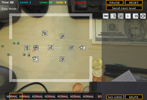 왼쪽에서 몰려오는 적을 오른쪽으로 못가게 막아야 하는 전형적인 디펜스 방식의 타이틀인 데스크탑 타워디펜스입니다.현재 가진 자금에 맞추어 유닛을 배치해야 하는데 사정거리를 감안해 배치하는게 관건이면 유닛마다 특징이 있기 때문에 최대한 공격에 효과적인 위치에 놓아주는게 승리의 지름길입니다.
