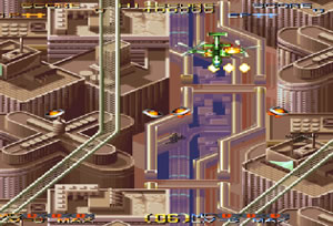 전면방어와 전체 방어 두가지의 방어 타입중에 한개를 선택해 종스크롤로 진행하면서 치열한 전투를 벌이는 슈팅 타이틀 바스입니다.전면과 전체의 장단점이 있는데 전면은 앞쪽은 확실하고 전체는 전면방어보다 방어력은 모자라지만 전체를 어느 정도 방어할수 있다는 장점이 있습니다.P아이템을 먹으면 무기가 강화되고 다른 B는 폭탄아이템입니다.상황에 따라 적절한 무기로 빠르게 교체하시는게 관건입니다.