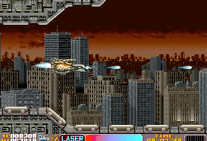 금속으로 이루어진 공간을 비행하면서 하늘과 땅에서 공격하는 적들의 공격을 피하고 공격을 하면서 정신없이 전투를 벌이는 갤럽 : 암드 폴리스 유니트입니다.일반무기이외에 공격력이 매우 강한 레이저를 쓸수있는데 하단에 게이지가 없어질 동안만 쓸수가 있습니다.지상 공격을 할수 있는 미사일은 M아이템을 획득하시면 됩니다.