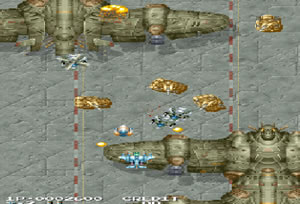 트윈코브라나 라이덴처럼 혼자서 해도 재미있지만 둘이서 하면 더 재미있는 종스크롤 슈팅 타이틀인 에어 듀얼입니다.첫 화면에서 기체를 선택하는 단계가 나오는데 일반 비행기와 헬기 두종류이며 헬기의 경우 이동하는 방향으로 총알이 나가는 방식이라 생소하다 싶으신 분은 일반 비행기를 선택하시면 되겠습니다.차지 기능은 없으며 역시나 그렇듯이 보스전을 대비해서 폭탄은 챙겨두시는게 좋습니다.