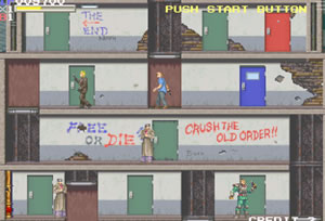 스파이가 되어 적의 기지에 잠입해 엘리베이터를 타고 다니면서 기밀문서를 전부 회수하면 스테이지가 클리어되는 엘리베이터 액션 2입니다.기밀문서가 있는 사무실은 문색깔이 빨간색이며 문앞에서 화살표 윗쪽키로 들어갈수 있고 자동으로 나오면서 기밀문서를 입수하게 됩니다.엘리베이터의 빈공간은 점프를 이용해 넘어갈 수 있고 곳곳에 있는 아이템을 획득하면 강력한 무기를 얻게 됩니다.