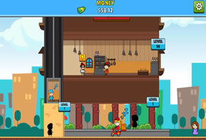 피자를 굽는 주방과 2층에서 1층으로 옮기는 서빙 그리고 1층에서 배달 바이크까지 옮기는 서빙을 연속적으로 수행해 주문자에게 물건을 건네야 하는 피자 배달 게임입니다.주문자에게 피자를 넘겨주면 결제를 하게 되고 결제되는 돈으로 주방과 1층, 2층의 서빙 업그레이드 그리고 각각 중간지점에서 서빙을 빠르게 도와주는 히든 캐릭터를 만들어 낼수 있습니다.히든 캐릭터의 경우 클릭을 하면 제한된 시간동안 서빙 업무를 빠르게 도와줍니다.