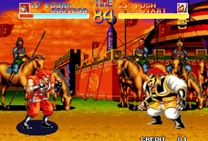 용호의 권이나 스트리트파이터 정도의 인기는 아니었지만 특유의 코믹한 필살기와 우스꽝스러운 캐릭터로 나름 매니아적인 타이틀로 알려진 월드 히어로즈입니다.기합소리도 요란하고 특유의 몸짓이 플레이를 진행하다보면 웃음을 유발하는데 그래도 게임성은 상당이 우수하니 재미있게 플레이해보시기 바랍니다.