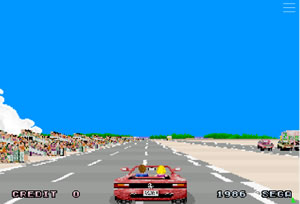 1980년대를 대표하는 레이싱 타이틀로 오픈카를 타고 시원하게 트인 해변을 아슬아슬하게 주행을 해야하는 아웃 런입니다.코스가 계속 바뀌어 지루함이 덜한 편이며 갈수록 코너가 급변하고 자동차 등의 장애물도 많이 등장해 스릴 만점으로 즐기실수 있을겁니다.플레이 들어가기 전에 조작법을 확실히 익혀두셔야 헤매지 않게 됩니다.