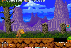 마법사의 저주를 받아 인간에서 원숭이가 되버린 전사가 원래대로 돌아가기 위해 마법사를 찾아가는 여정을 담은 토키입니다.횡스크롤로 진행하면서 입에서 발사되는 총알로 몬스터를 제거해나가면 되는데 아이템을 먹으면 총알의 성능이 바뀌면서 좀더 간단히 적을 제압할수 있게 됩니다.쉬우 보이지만 은근 까다로운 감이 없지않아 있습니다.