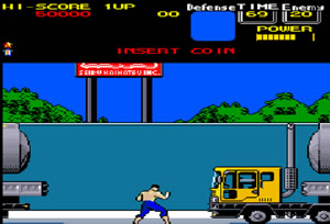탁트인 도로를 배경으로 여기저기 몰려오는 불량배들을 하나하나 남김없이 쓰러트려야 하는 액션 타이틀인 너클조입니다.플레이시 팁을 드리자면 그냥 지나갈때는 공격을 안하기 때문에 스치면서 펀치나 킥을 날려 공격하는게 데미지를 덜 받는 지름길입니다.연습이 좀 필요한데 능숙해지면 스치면서 공격하는게 훨씬 편하실겁니다.