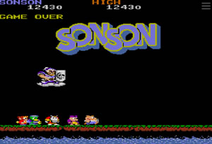 횡스크롤로 진행되는 아케이드 게임으로 서유기의 주인공인 손오공이 등장해 전투를 벌이게 되는 손손입니다.위아래를 이리저리 오가면서 다가오는 몬스터를 제거해주면 되는데 뒤로 갔던 몬스터가 다시 앞으로 올수도 있습니다.아이템이 계속 등장하는데 특정 아이템을 먹게 되면 몬스터가 전부 점수 아이템으로 변해 점수를 얻을 수가 있습니다.
