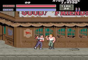 도심 도로를 배경으로 납치된 여친을 구하기 위해 폭력배들과 맞대결을 펼치며 전진해 나아가는 액션 타이틀 이소룡2입니다.단순하지만 앞뒤로 동시에 공격해오는 폭력배들을 상대하려면 쉴틈도 없이 정신없이 버튼을 눌러야 하는데 단거리용의 킥과 원거리용의 펀치의 배합이 매우 중요하게 작용합니다.