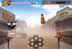 배경은 서부시대이고 좌우에서 날아오는 병을 잽싸게 조준해서 맞춰야 하는 슈팅 타이틀로 은근 난이도가 높은 와일드슈터 플래시게임입니다.6발의 총알이 주어지고 6발을 쏘면 다시 재장전을 해야 합니다.도중에 다양한 아이템으로 유리한 진행이 가능하지만 피해를 주는 아이템도 있으니 조심하시구요.