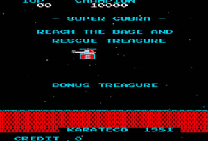 고전 횡스크롤 슈팅의 레전드인 스크램블을 기억하고 계신분 이라면 기체만 헬리콥터로 바뀐것으로 단번에 알아채실 슈퍼코브라입니다.특색이 있는 각 스테이지를 비행하면서 공중과 지상의 적들을 총알과 폭탄으로 제압하시면 됩니다.에너지는 지상에 있는 유조탱크를 파괴해야 얻을수 있으니 이점 꼭 알아두시구요.