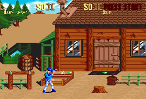 서부시대를 배경으로 캐릭터를 선택후 현상수배범을 잡는 미션을 받고 마을에 들어가 총격전을 벌이는 선셋 라이더스입니다.길가는 물론 건물에서도 무법자들의 공격이 난무하기 때문에 반드시 총알에 옵션이 붙은 총을 가져야 하는데 건물 문으로 들어가면 아이템을 얻을수 있습니다.2층으로 올라갈때는 윗쪽 화살표키와 점프를 함께 눌러주셔야 합니다.처음 진행시 엔터키를 눌러야 다음으로 넘어가게 됩니다.