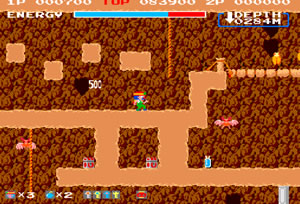영화 인디나아존스의 존스 박사와 비슷한 차림새의 과학자가 동굴에 들어가 탐험을 하는 아케이드형 타이틀인 동굴탐험게임입니다.던지기 공격과 점프 두개의 동작으로 탐험을 하시면 되는데 움직일때마다 체력이 빠지기 때문에 부지런히 움직이면서 에너지를 드셔야 합니다.보기엔 별거 아닌거 같은데 은근 난이도가 높은 편입니다.