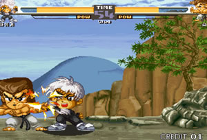국산 타이틀로 약공격, 강공격, 잡기의 기본 공격과 기모으기, 피하기, 구르기, 러쉬 등의 보조공격을 할수 있는 SD 파이터즈입니다.8명의 캐릭터중에 한명을 선택해서 대결을 하시면 되는데 캐릭터가 2등신 정도 되는 비율이라 은근 귀여움이 넘쳐 흐릅니다.플레이 초반에 앞서 언급한 기술을 쓰는 방법을 스틱과 버튼의 시뮬레이션으로 설명을 해주니 그냥 넘어가지 마시고 꼭 확인을 해주세요.
