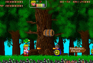 횡스크롤로 진행되며 위아래로 이동하면서 동굴이나 나무위에서 출현하는 병사와 식인식물 등을 제거해야 하는 판타지랜드입니다.도트가 두드러질 정도의 그래픽이지만 빠르게 진행되면서 무기쓰는 재미가 있어 Shift키로 동전을 계속 넣고 엔터키로 이어서 하기를 하시면 은근 꿀재미을 느끼실수 있을겁니다.