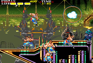 공업도시의 제철소를 배경으로 앞으로 무조건 전진하면서 치고박고 싸움질을 해야하는 횡스크롤 타입의 액션 타이틀인 캐논 댄스입니다.일반 공격 이외에도 앉은채로 공격키를 눌러주거나 점프하고 공격키를 눌러주거나해서 다른 공격 방식도 쓸수가 있습니다.필살기는 3번을 쓸수 있는데 공중 여기저기를 순간적으로 이동하면서 공격을 하게 됩니다.