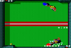 일대일로 상대편 진영으로 공을 보내 골을 넣으면 점수를 얻게 되는 방식의 스포츠 타이틀인 패들매니아입니다.라인아웃 없이 벽에 반사시키는 방식의 스쿼시에 축구를 접목했다고 보시면 되는데 라켓을 휘두를 때 공을 벽에 반사시키면 골을 넣게 될 확률이 조금은 높아지게 됩니다.생소한 타이틀이지만 플레이해 보시면 은근 재미는 있을겁니다.화면이 다음으로 이동이 안될때는 엔터키를 눌러주시구요.