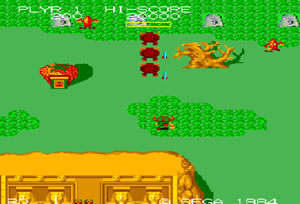 바이킹 배에서 내린 소년이 모험을 떠나면서 도중에 만나게 되는 적을 쓰러트리는 종스크롤 타입의 타이틀인 미스터 바이킹입니다.꽤 오래된 타이틀임을 그래픽만 봐도 알수가 있는데 그래도 귀여운 바이킹 소년의 모습은 지금 내놔도 촌스럽지 않을것 같습니다.공격은 주무기와 보조무기 2가지로 할수 있는데 보조무기의 경우 바이킹 배에서 떨어트린 아이템을 먹고나서 쓸수 있습니다.