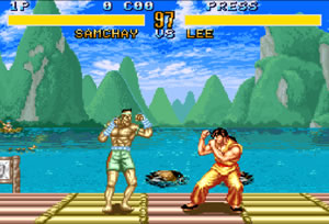 대전액션이 오락실의 대부분을 차지했을 시절에 등장한게 당연해 보이는 조작키와 그래픽을 보여주는 파이터즈 히스토리입니다.게임을 시작하면 9명중에 하나를 선택후 시작하자마자 치열하게 전투를 벌이시면 되는데 CPU와 할때는 패턴을 기억해 두었다가 공격을 하시면 크게 힘들이지 않고 승리하실수 있을겁니다.