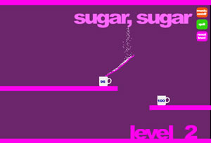 천정에서 떨어지는 설탕을 컵에 쓰여진 숫자만큼 채우면 미션이 완료되고 좀더 어려운 다음 미션으로 이동하는 퍼즐형 타이틀인 슈가슈가입니다.설탕이 떨어지면 선을 그어서 설탕이 떨어지는 길을 만들어주면 되는데 컵이 한개일 때는 문제 없지만 여러개가 있을때는 순서를 감안해 길을 만들어야 하는 두되 플레이가 요구됩니다.미션마다 주어진 조건을 반드시 완수해야 하며 만약 도중에 다시 도전하고 싶을 때는 오른쪽의 Reset버튼을 눌러주시면 됩니다.