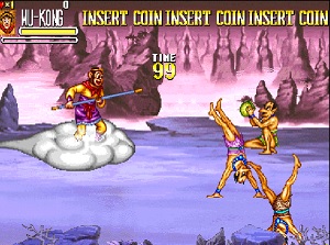 손오공, 저팔계, 사오정, 삼장법사가 등장하는 서유기를 배경으로 캐릭터 하나를 선택후 요물을 사냥하는 횡스크롤 형식의 오리엔탈 레전드입니다.손오공의 경우 초반에 권두운을 타고 등장하며 권두운에서 내린후 바로 전투를 벌이게 됩니다.점프후 공격키를 눌러주면 킥 공격을 할수 있고 달리면서 공격하는 차지공격도 가능합니다.공격할때 이동키의 방향에 따라 공격기술이 달라지니 잘 응용하시면 다수의 요물을 상대할때 요긴하실 겁니다.