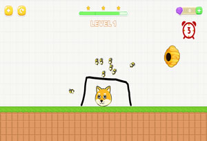 예쁜 고양이를 벌떼로부터 구하기 위해 보호막을 만들어줘야 하는데 대충 하다가는 바로 스테이지 아웃되는 퍼즐형 타이틀 선긋기 게임입니다.벌떼의 힘이 강하기 때문에 균형이 안맞을 경우 옆으로 쓰러질 수도 있는데 지지할 벽이 있을 경우에는 벽에 바싹 붙어 그려주는게 좋습니다.벌떼로부터 안전해도 물이나 불에 들어가면 고양이가 잘못되니 주변 환경까지 감안해 만들어 주셔야 합니다.