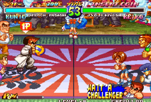 작은 코트위에서 상대진영으로 공을 날려 상대를 맞추는 피구 같지만 게이지를 보면 눈치채셨을텐데 격투 스타일까지 섞여있는 슈퍼 닷지볼입니다.캐릭터 조합을 선택해 3:3으로 대결을 벌이게 되는데 코트가 협소해 금새 승부가 나는 타이틀입니다.필살기의 경우 일단 기본키를 마스터하신 후에 구글 검색을 이용해 완벽하게 익히시면 더 재미있게 게임을 즐기실수 있을겁니다.