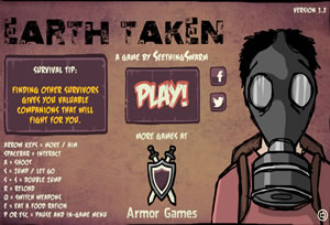 방독면을 쓰고 방사능에 오염된 지구 여기저기를 돌아다니면서 정체불명의 외계인을 제거해 인류 종말을 막아야 하는 어스테이큰의 오리지널입니다.공격을 받으면 체력게이지가 낮아지는데 체력 아이템을 얻은후에 E키를 눌러 충전시켜주시면 됩니다.미션을 끝낸후에는 새로운 아이템을 좀더 강력한 무장이 가능합니다.함께 전투를 하는 동료도 생기는데 은근 든든한 느낌을 받을수 있습니다.