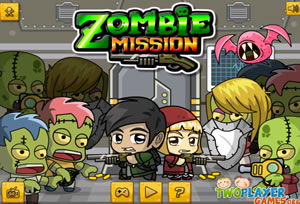 소년 소녀가 왼쪽에서 오른쪽으로 함께 걸어가면서 곳곳에서 덤벼오는 좀비들을 제거하고 아이템을 먹어야 하는 2인용 좀비총게임인 좀비미션입니다.총쏘기는 물론 이중점프 그리고 때리기 등이 가능하고 무기를 구한후 무기 교환을 해서 좀더 유리하게 전투를 진행할수 있습니다.