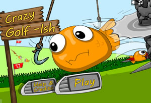 골프공 대신에 금붕어가 골프공 역할을 하는 게임으로 홀이 아닌 물이 가득차 있는 수조에 넣으면 라운드가 클리어되는 미친 물고기 골프 게임입니다.코스에 온갖 장애물이 포진되어 있는데 꼬챙이를 비롯해 회전하는 톱날 그리고 물고기에게 특히나 치명적인 낚시 바늘 등이 있으며 그만큼 세밀한 조정이 필요합니다.수조의 위치가 보이지 않는 코스가 대부분이라 한번 일단 날려보고 대강의 코스를 파악하시는게 좋습니다.