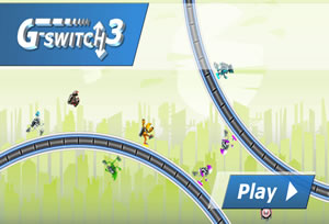 금속 재질의 바닥과 천정을 오르락내리락하면서 장애물을 피하며 달리기만 하면 되는 횡스크롤 아케이드 타이틀인 G-스위치의 3번째 버전입니다.톱날은 기본이고 가지 각색의 함정이 도사리고 있는데 잠시만 한눈 팔아도 바로 아웃되니 정신을 집중하면서 플레이 하셔야 할겁니다.윗쪽에 천정이 없을때 전환 버튼을 누르면 허공으로 날아가게 되니 주의해 주시구요.