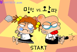 추억의 고전게임으로 던지기겜의 대표작이라 할수있는 밍밍 대 왕따 게임입니다.1인용은 물론 2인용으로도 즐길수 있으며 돌멩이와 고무신을 상대편에게 날려 상대의 체력을 0으로 만들면 이기는 방식입니다.바람세기 그리고 던지는 세기를 잘 생각해 던져주셔야 하는데 처음 플레이하시는 분이라도 두어번 던져보시면 바로 익숙해지실 겁니다.