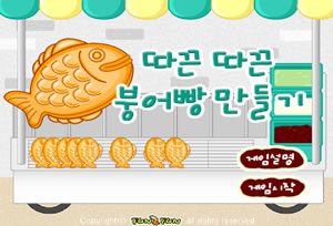 군고구마와 함께 겨울철 양대 길거리 먹거리 중의 하나인 붕어빵을 가상으로 만들어 파는 붕어빵 만들기 게임입니다.반죽을 뜨거운 틀에 붓고 달콤한 팥을 넣은후 앞위로 골고루 뒤집어 주시고 봉지에 담기만 하면 됩니다.시간이 너무 오래 걸리면 까맣게 타게 되니 빨리빨리 넣고 뒤집어주셔야 합니다.요리 타이틀 치고는 플레이 시간이 짧고 난이도가 낮은 편입니다.