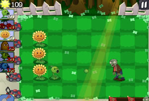 왼쪽에 각종 식물을 배치해 공격과 방어를 하면서 농장을 습격해오는 좀비들을 전부 쓰러트려야 하는 디펜스 장르의 클래식 타이틀인 식물 대 좀비입니다.해바라기로 자금을 마련하고 자금으로 유닛을 세우시면 되는데 자금의 경우 별로 표시가 되며 일일이 클릭을 해서 모아주셔야 합니다.바윗돌은 방어벽에 해당하며 높은 가격의 식물은 일회성 폭탄 아이템으로 급할때 쓰시면 꽤 좋습니다.왼쪽 하단의 삽은 이미 배치한 유닛을 다시 제거할때 쓰시면 됩니다.
