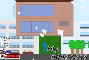 하늘에서 떨어지는 거대한 건물에 깔리지 않게 검을 한시도 쉬지하고 휘둘러 건물을 산산조각내야 하는 건물부수기 게임입니다.왼쪽 상단의 초록색 깃발 버튼을 눌러주면 게임이 시작되고 바로 옆의 빨강색 버튼을 눌러주면 플레이가 잠시 멈추게 됩니다.건물을 부수게 되면 체력 게이지 바로 위의 필살기 게이지가 차오르게 되며 전부 차오르면 X키를 눌러 필살기를 쓰실수 있습니다.