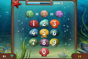 바닷속을 배경으로 커다란 계산기 화면에 주어지는 문제에 해당하는 답을 선택해 맞춰야 하는 퍼즐형 타이틀인 덧셈 뺄셈 곱셈 나눗셈 게임입니다.한문제만 틀려도 바로 아웃이고 처음부터 시작해야 하는데 더하기를 시작으로 빼기, 곱하기 그리고 나눗셈 문제가 나오게 됩니다.쉽긴 쉬운데 제한시간이 있기 때문에 빠르게 문제를 풀어야 합니다.