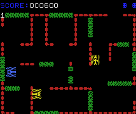 화면을 보면 연식이 있는 흑백 게임같지만 플레이화면은 컬러인 타이틀로 움직임이 매우 느린 탱크가 등장하는 헬리탱크(Heli Tank)입니다.화면에 등장하는 다른 탱크를 전부 파괴하면 되는데 벽에 맞는 포탄은 반사되고 숲은 통과된다는 점만 알아두시면 크게 어려움없이 진행하실수 있을겁니다.현재 화면을 클리어하고 화면 가장자리로 이동을 하면 다음 화면으로 이동하게 됩니다.